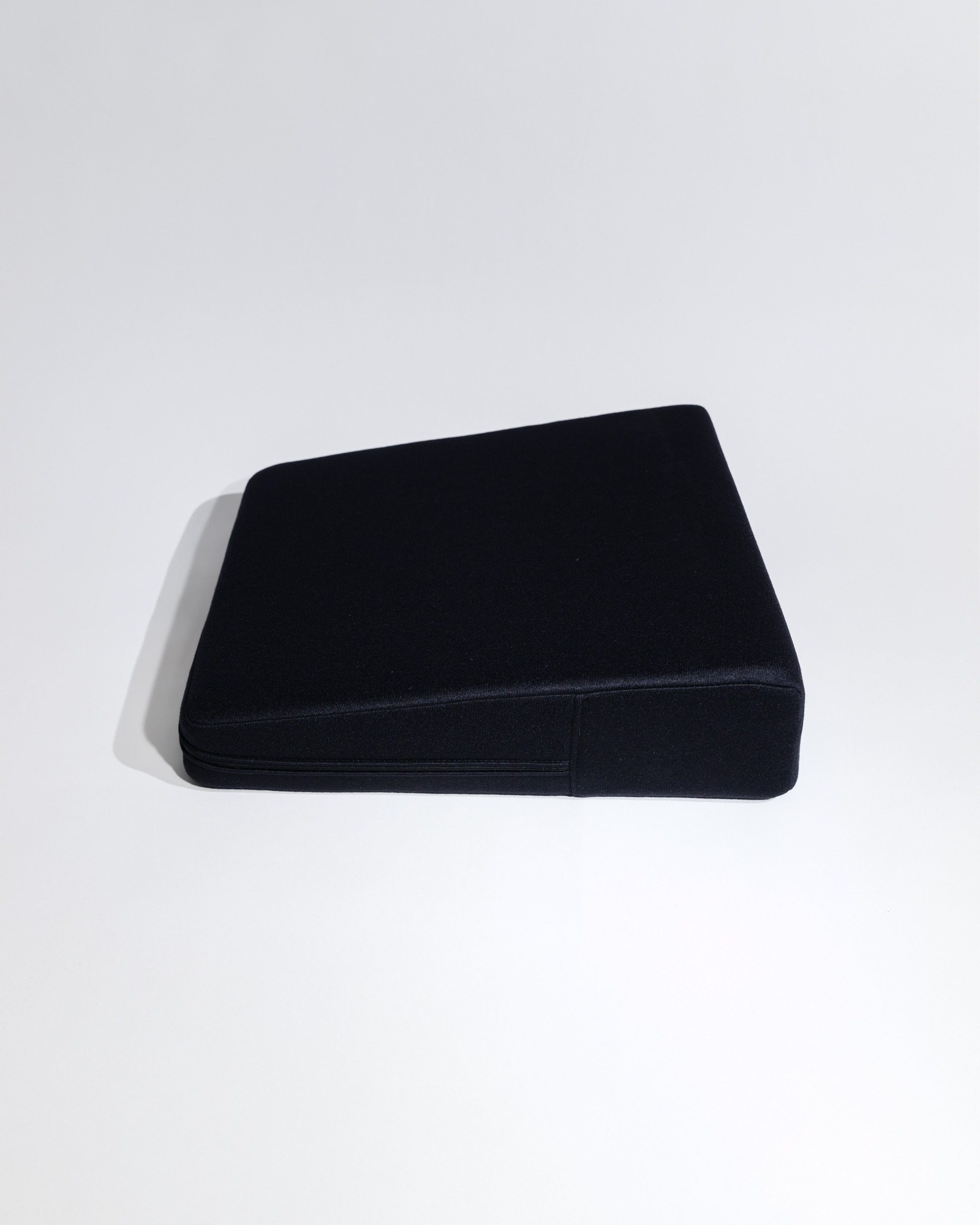 Wedge er fremstillet af fleksibelt polyetherskumskum og har en fastere forkant og en blødere bagkant, hvilket sikrer optimal ergonomi og komfort. Wedge kan med fordel bruges, når du sidder i sofaen eller på en stol, så du får lidt mere støtte, og formen kan hjælpe dig med nemmere at sætte dig eller rejse dig.