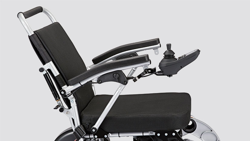 Der er lagt stor vægt på ergonomi og brugervenlighed. Det smarte beslag til joysticket kan foldes ned, så du kan komme tættere på bordkanten, og fodstøtten kan nemt foldes væk, når du sidder eller står. Store luftfyldte baghjul og affjedring i forgaflen giver god støddæmpning, selv på ujævne underlag.