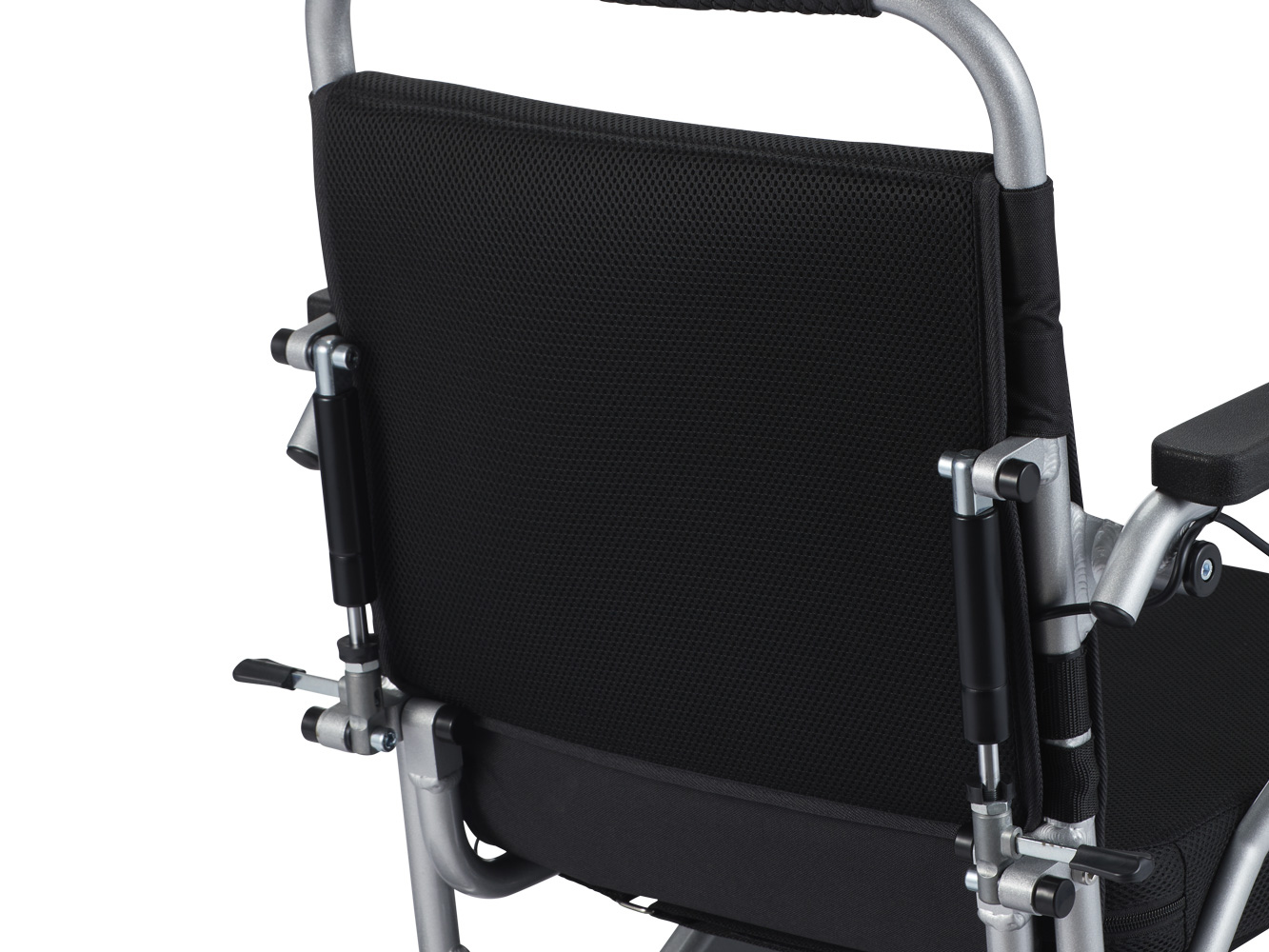 De store, luftfyldte baghjul giver komfort selv på ujævne underlag, hvilket gør denne model velegnet til både indendørs og udendørs brug. Det justerbare ryglæn, den afrundede rygbøjle og de tre forskellige sædebredder sikrer øget siddekomfort. Fodstøtten og armlænene kan foldes væk for at lette ind- og udstigning.