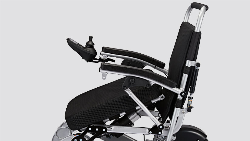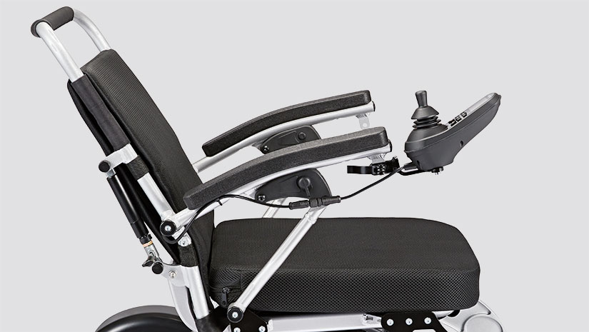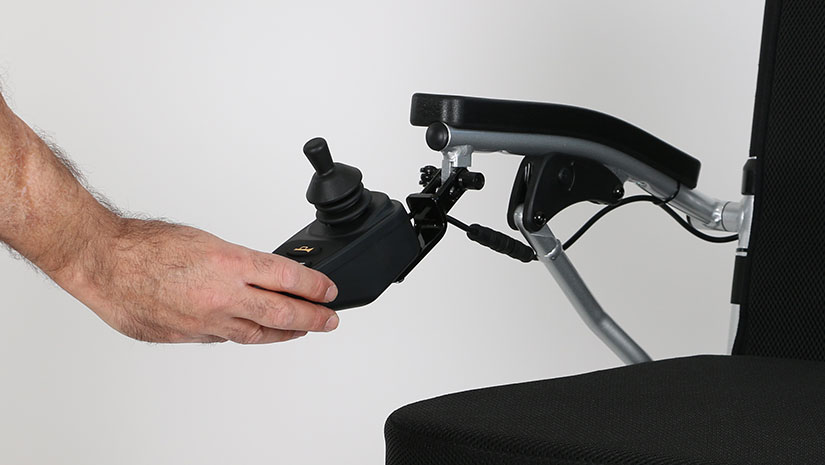 Det smarte joystick-beslag betyder, at du kan komme tættere på bordkanten og forbedrer fremkommeligheden. Fodstøtten kan nemt foldes ind under sædet, og de store luftfyldte baghjul sikrer behagelig kørsel, selv på ujævnt underlag. Med to batterier som standard og plads til et tredje er rækkevidden op til 45 km, hvilket giver 7,5 timers brug på en enkelt opladning.