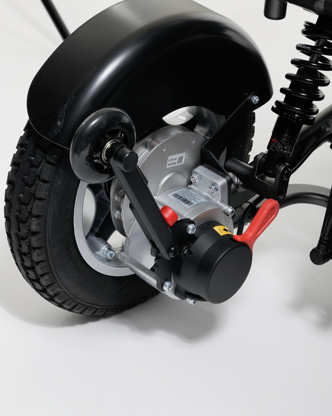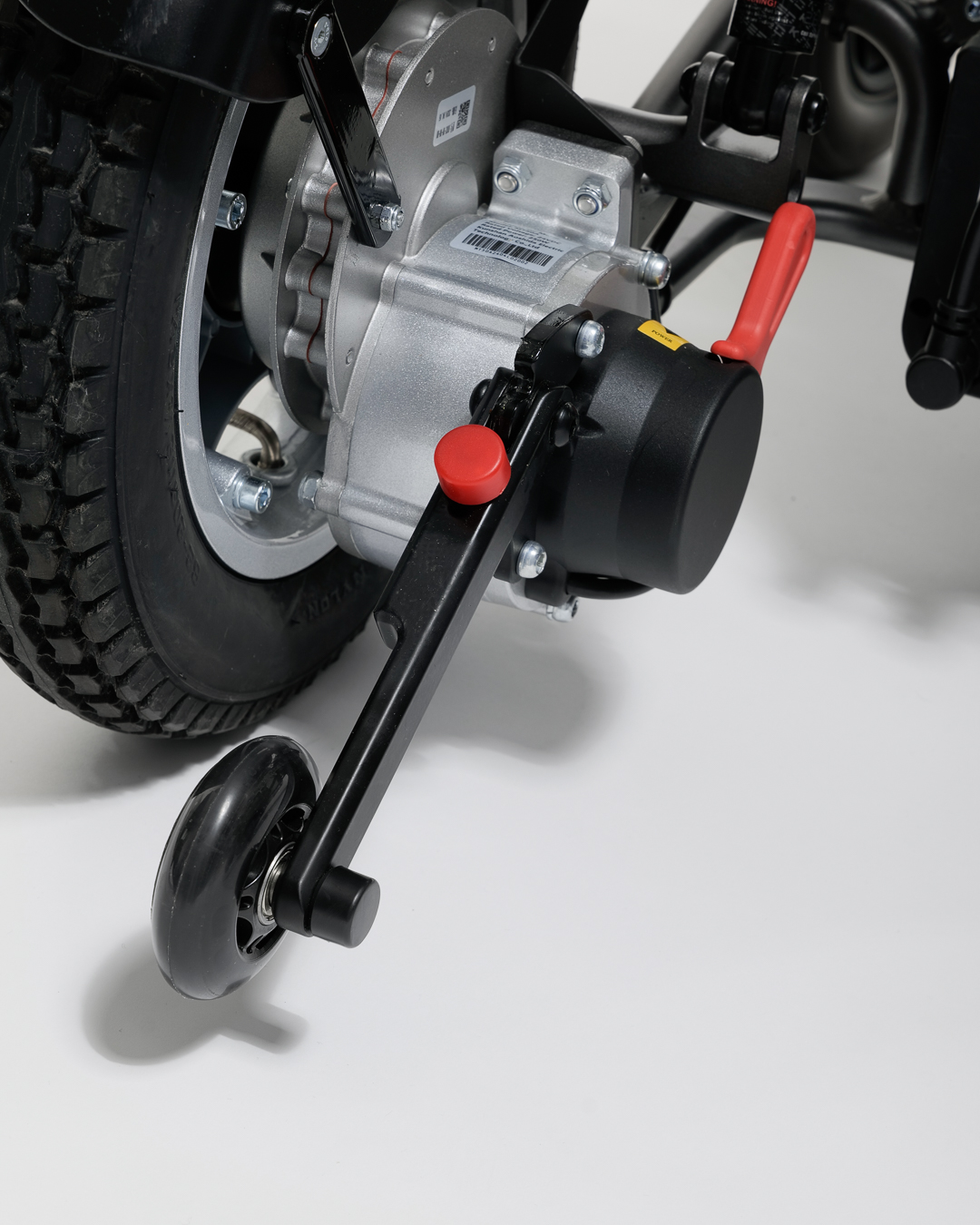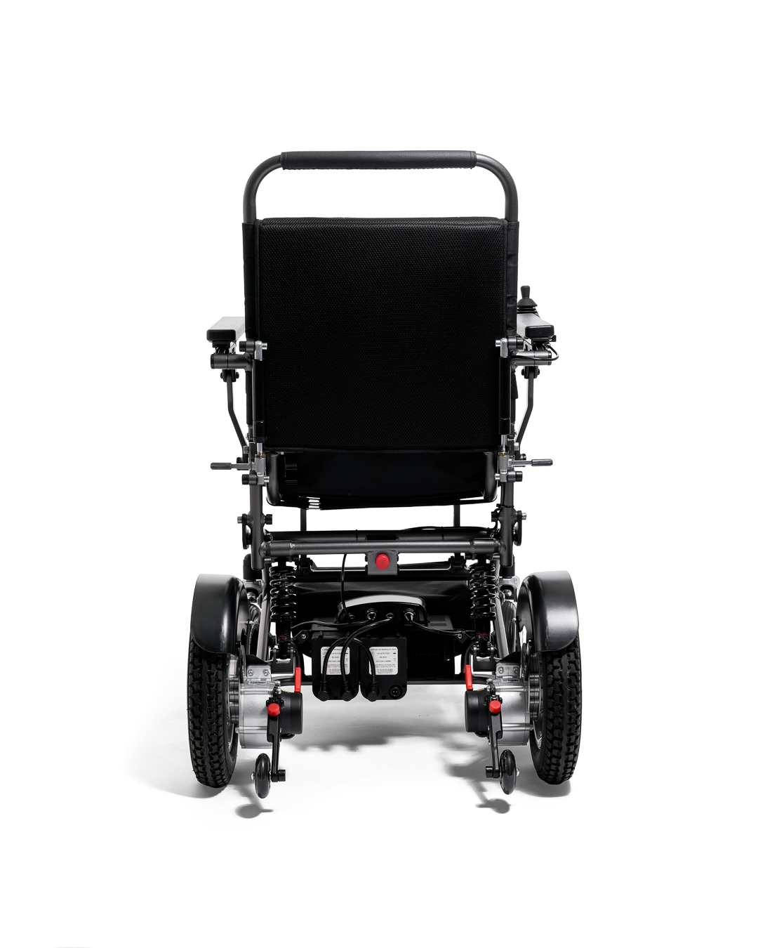 Med affjedring på alle fire hjul og effektiv dæmpning på baghjulene sikrer denne stol en jævn og behagelig kørsel. Køreegenskaberne forbedres yderligere af det specialdesignede stive og robuste chassis.