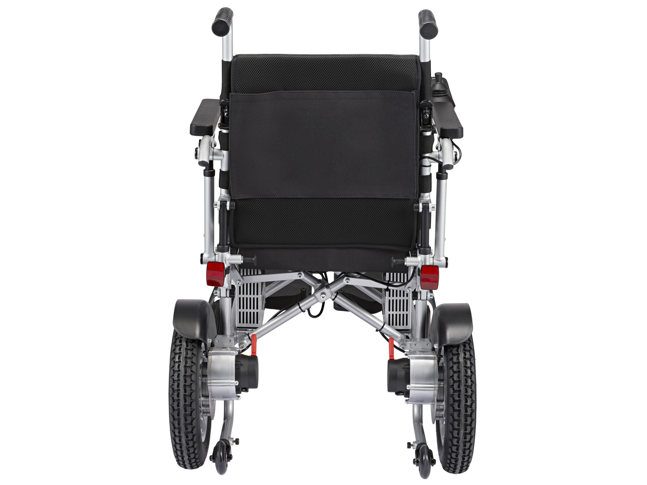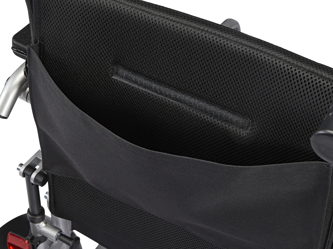 De klassiske styrehåndtag til kørestole er placeret bag ryglænet og gør det nemt for et familiemedlem eller en plejer at skubbe stolen manuelt. De giver også fremragende støtte, hvis brugeren ønsker at bruge sin el-kørestol som rollator over kortere strækninger.