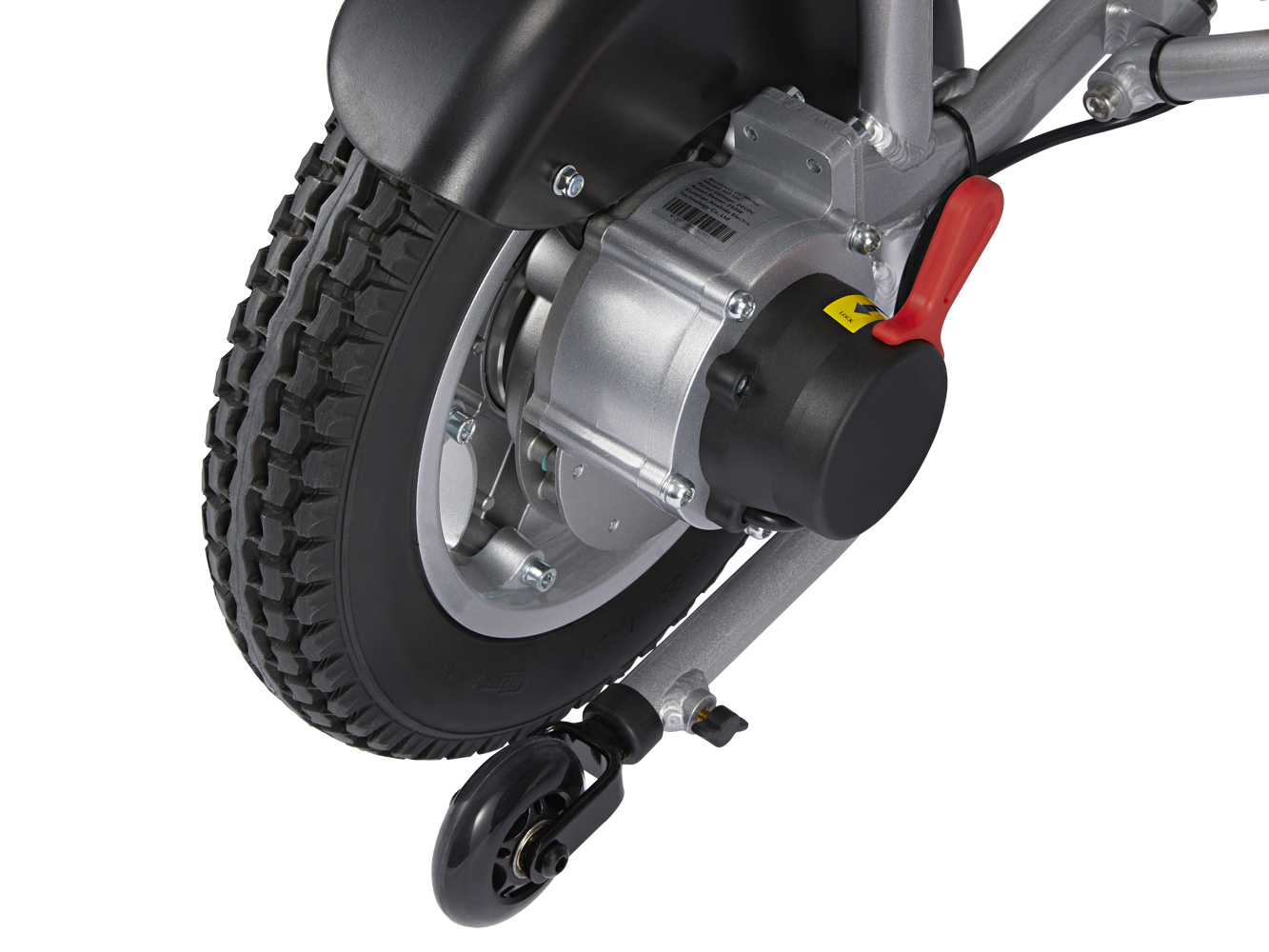 På denne model får du store 12-tommers luftfyldte baghjul, der giver suverænt greb og fremkommelighed på alle underlag. Du får desuden en mere komfortabel oplevelse, når du kører på ujævne underlag som grusveje eller brosten.