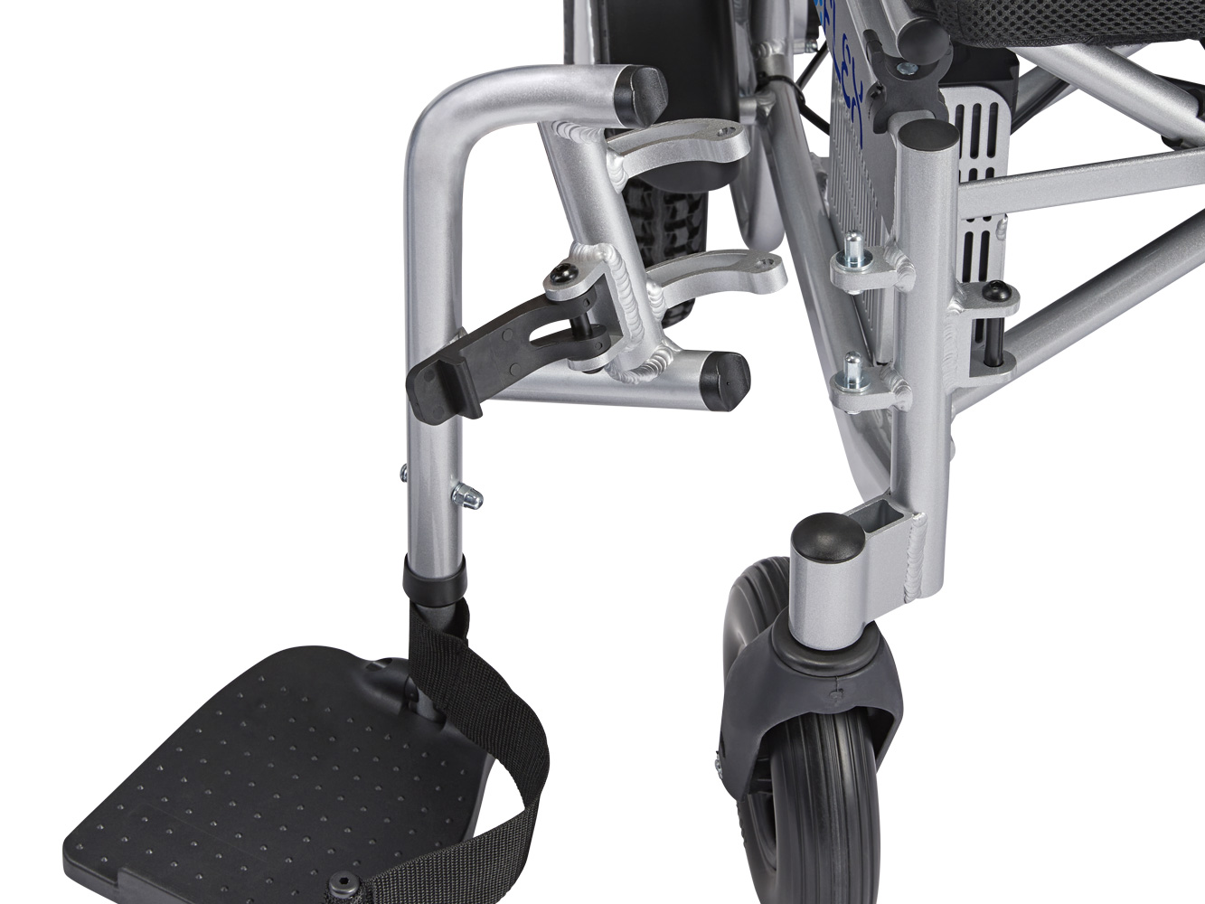 Model X er som standard udstyret med foldbare fodplader, der giver fleksibilitet i brugen. Fodstøtterne kan også foldes til siden eller tages af, så det bliver lettere at komme ind og ud af stolen. Det justerbare ryglæn kan indstilles i flere vinkler, hvilket er ideelt for dem, der sidder i kørestolen i længere tid. For øget komfort kan armlænene monteres i to forskellige højder.