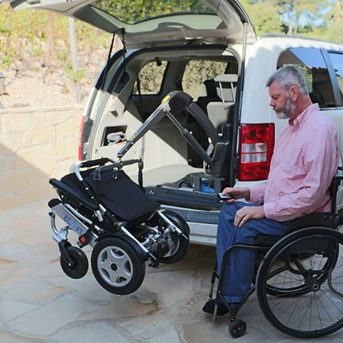 Hvis du ønsker en praktisk, men lidt dyrere løsning, kan du overveje at installere en kran i bagagerummet på din bil og ved hjælp af den løfte Eloflexen ind i bilen. Det er den bedste løsning, hvis du sidder i kørestol og gerne vil kunne få din Eloflex i bilen på egen hånd. Der findes mange kranløsninger og -modeller på markedet, men da din Eloflex er kompakt og let, er det ofte tilstrækkeligt med en forholdsvis enkel kran. Vi foreslår, at du kontakter dit nærmeste bilmonteringsfirma for yderligere oplysninger og vejledning.